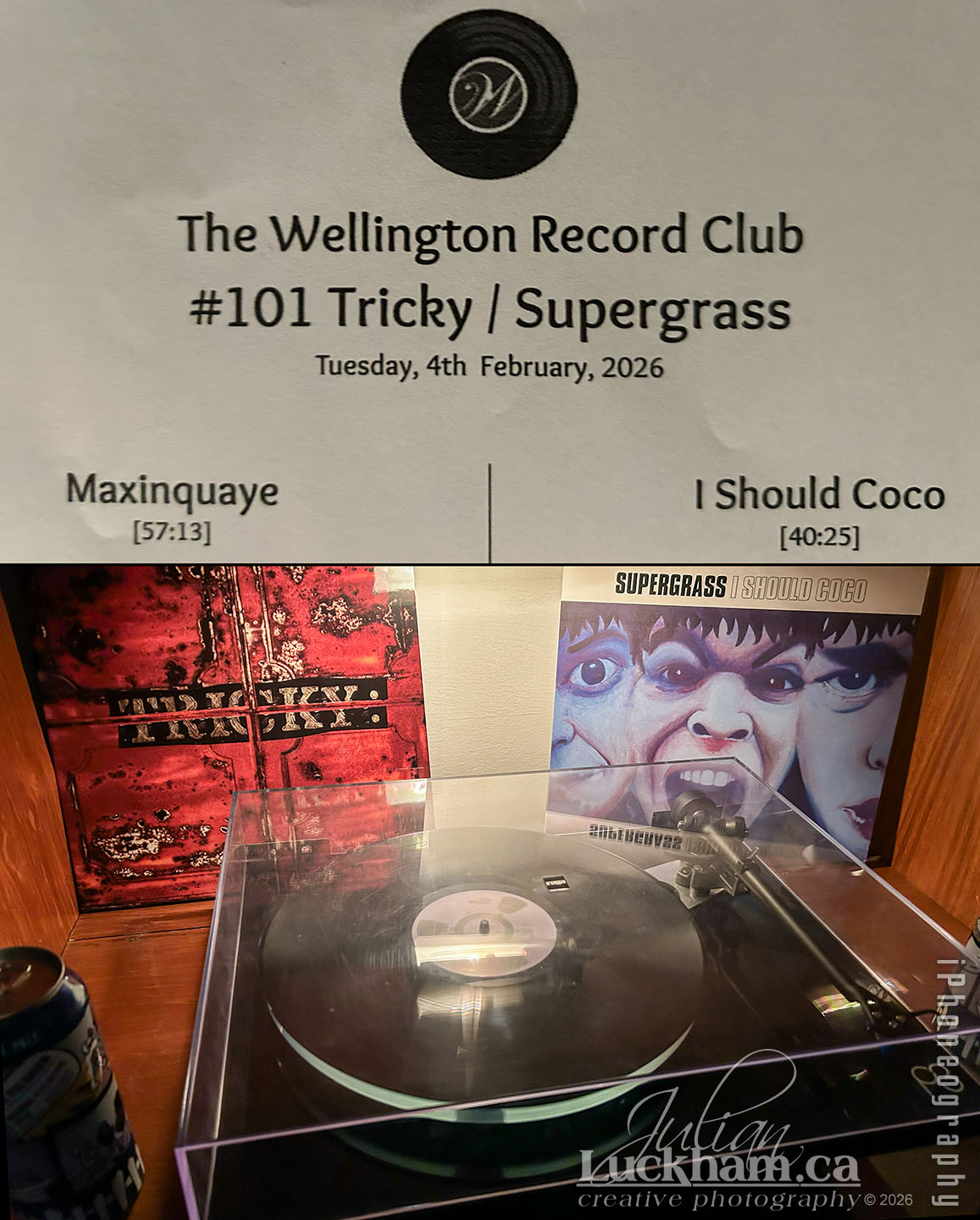 Read more →#101!! The Wellington Record Club meets monthly at The Wellington Gastropub in the White Room, and last night was the 101st meetup. We listened to two debut albums released a few months apart back in 1995, Tricky’s Maxinquaye and Supergrass’s I Should Coco. Great music on Tetra Listening Instruments-Speakers, with