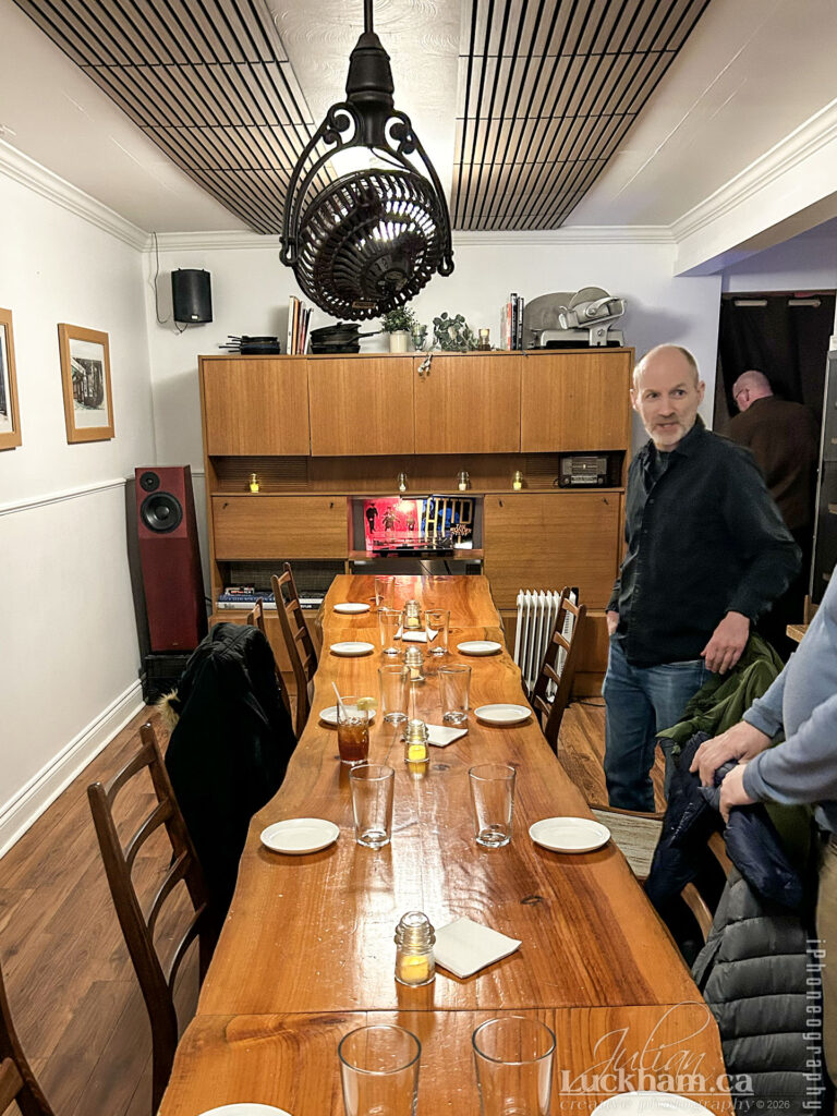 A bonus Record Club Night last night #102 at The Wellington Gastropub listening to the first two albums by another band I was not too familiar with The Wonder Stuff. And it was… wonderful! I decided to take a few photos this time to give you a better sense as to what Record Club is all about. Sure we sit down and listen to records but it’s more than that. When we arrive we have time to chat with fellow listeners, and sample some incredible food from Shane’s restaurant and a couple of drinks, be it a craft beer, or as in my case a craft cider. The “White Room” is very comfortable with a long table so you can chat comfortably while eating, but when the needle drops – the lights go down and there’s no talking, so we can all enjoy every minute of the music coming out of my friend Adrian’s Tetra Listening Instruments-Speakers. And a lesson we have all learned, which came up last night, is going home to try and recreate the listening experience with the very same album is impossible if you don’t have Tetra Speakers! Let Shane know at The Wellington Gastropub if you’d like to be put on the monthly mailing list, which includes the Bowie Tribute every year in January, it’s always a wonderful time!